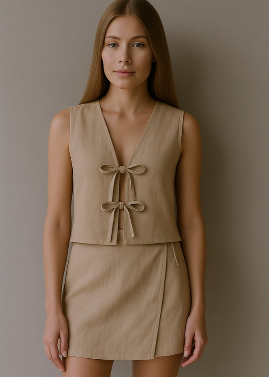 Linen Wrap Skirt - Beige