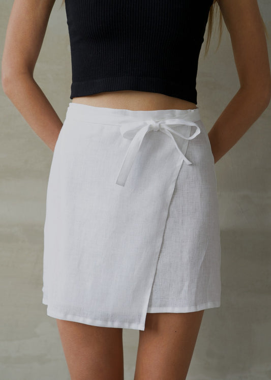 Linen Wrap Skirt - White
