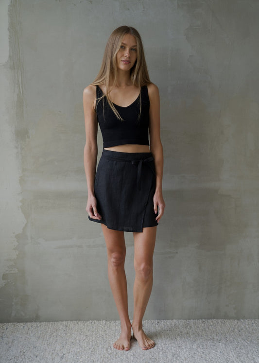 Linen Wrap Skirt - Black