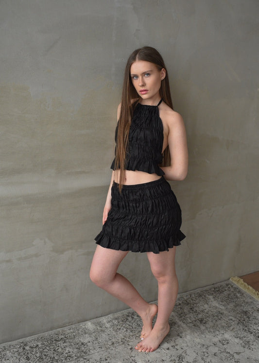 Linen Shirred Skirt - Black