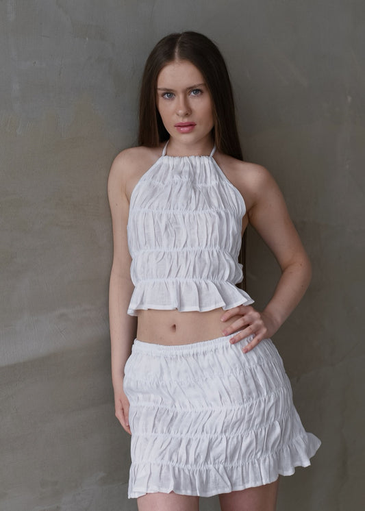 Linen Shirred Skirt - White