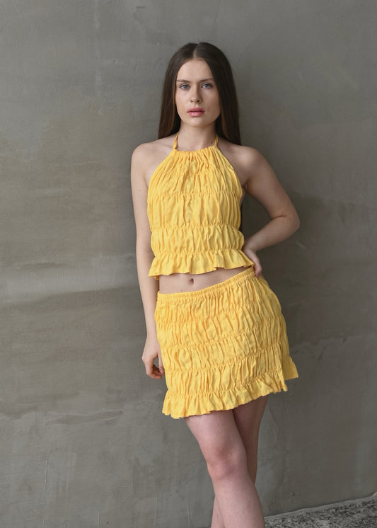 Linen Shirred Skirt - Yellow